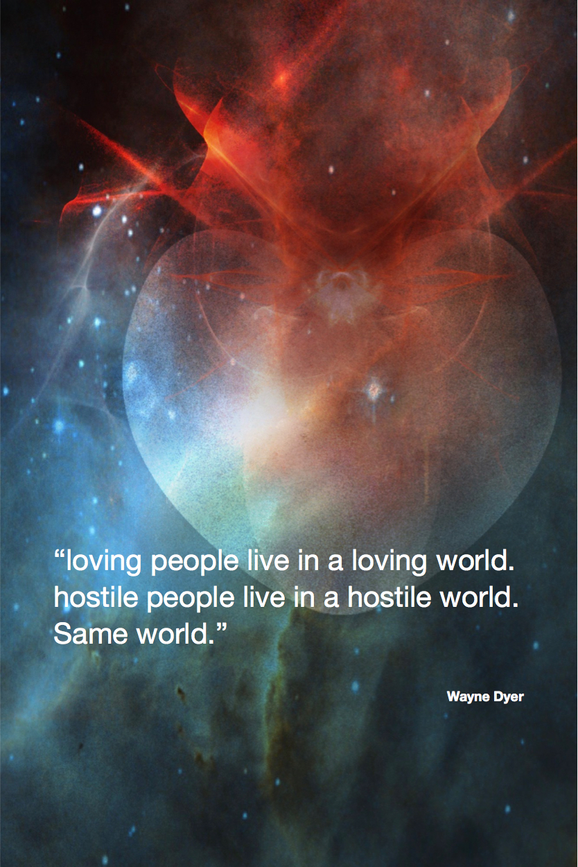 loving people live in a loving world. Hostile people live in a hostile world. Same world. Wayne Dyer Quote fractal painting by margaret dill #wordsofwisdom #wordsofncouragement #spiritualquotes