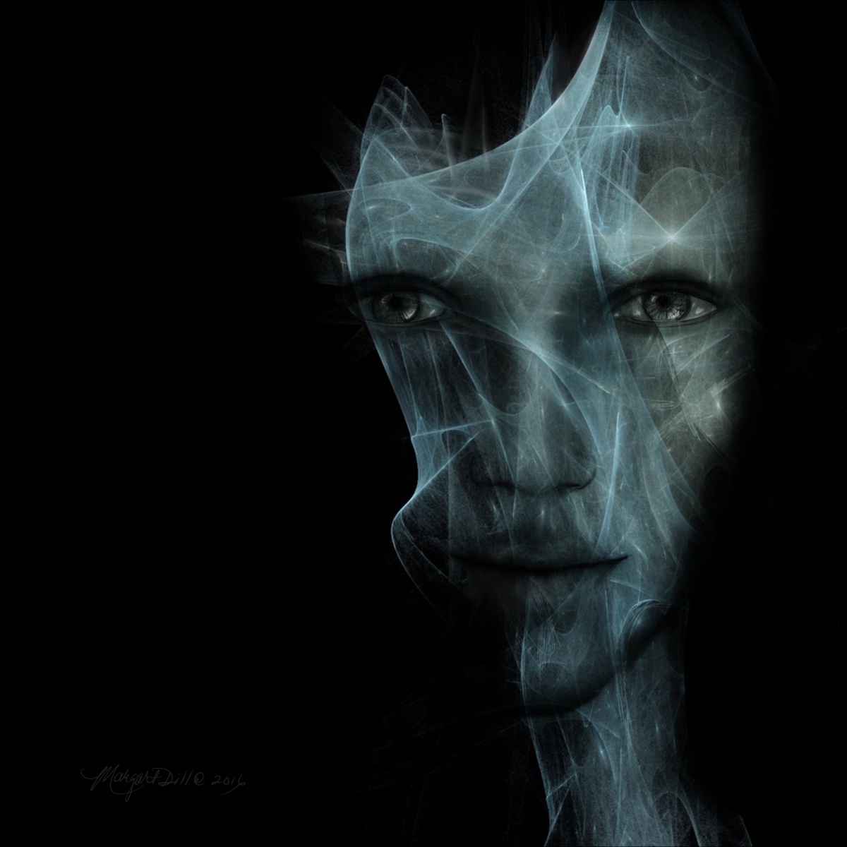Angel Gabriel An ethereal dreamlike spiritual portrait in deep blues and shadow, is part of my spiritual beings of light collection. Artwork by Margaret Dill #Visionaryart #Visionaryartspiritual #Visionaryartmystical #Margaretdill
