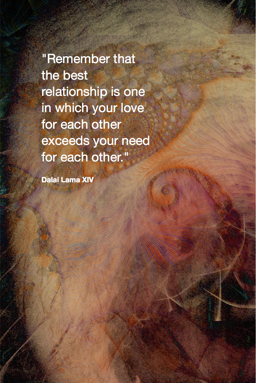 Remember that the best relationship is one in which your love for each other exceeds your need for each other. Dalai Lama XIV Quote Fractal Art by Margaret Dill #spiritualquotes #wordsofwisdom #Fractalart #AbstractArt #Margaretdill