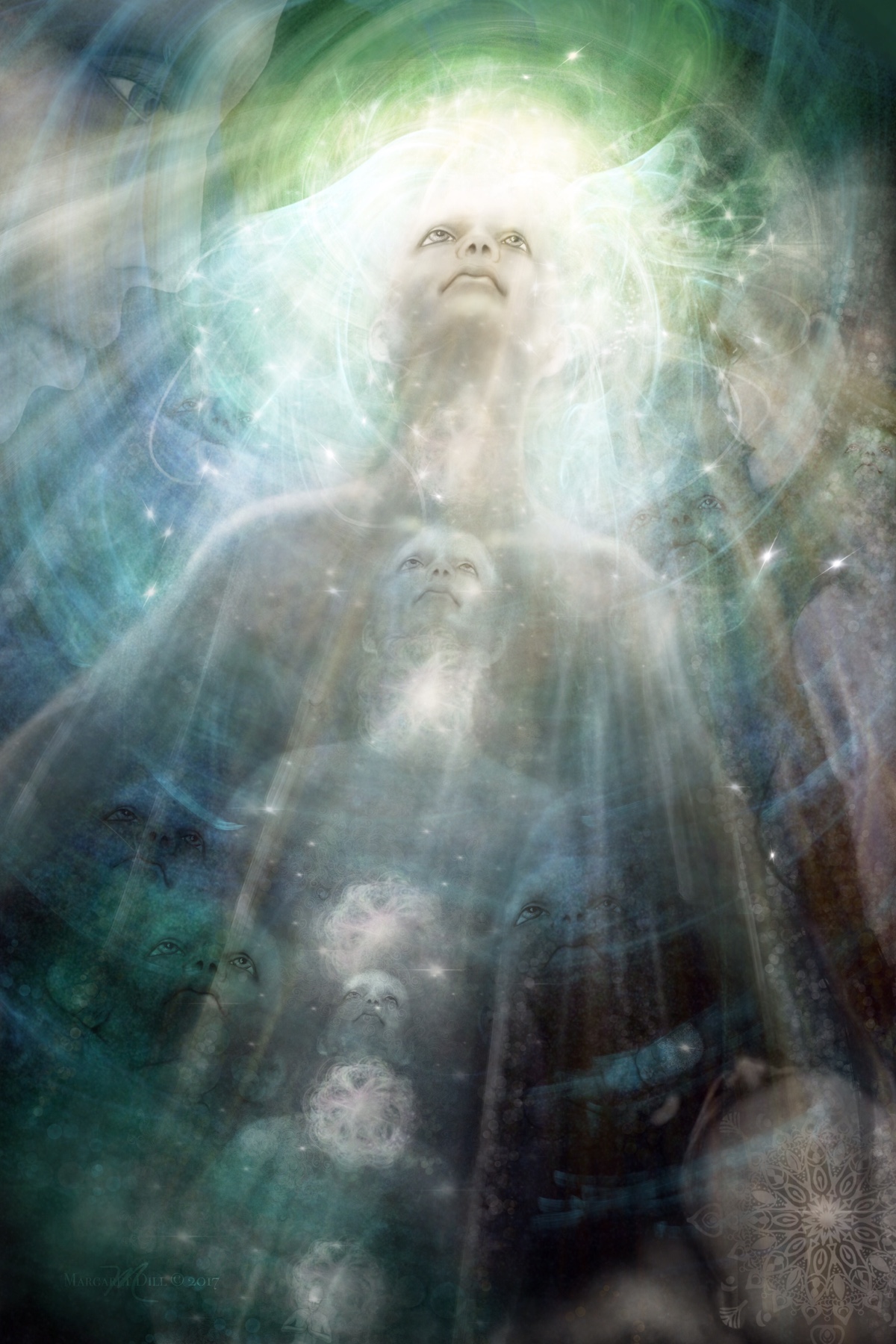 Ascension- An ethereal dreamlike spiritual portrait in soft greens and white, is part of my spiritual beings of light collection. Artwork by Margaret Dill #Visionaryart #Visionaryartspiritual #Visionaryartmystical #Margaretdill