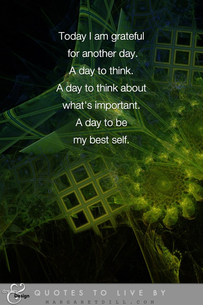 Today I am grateful for another day. A day to think. A day to think about what’s important. A day to be my best self.