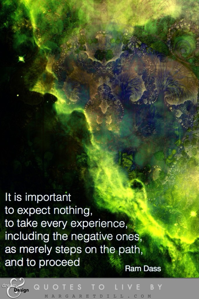 It is important to expect nothing, to take every experience, including the negative ones, as merely steps on the path, and to proceed.
