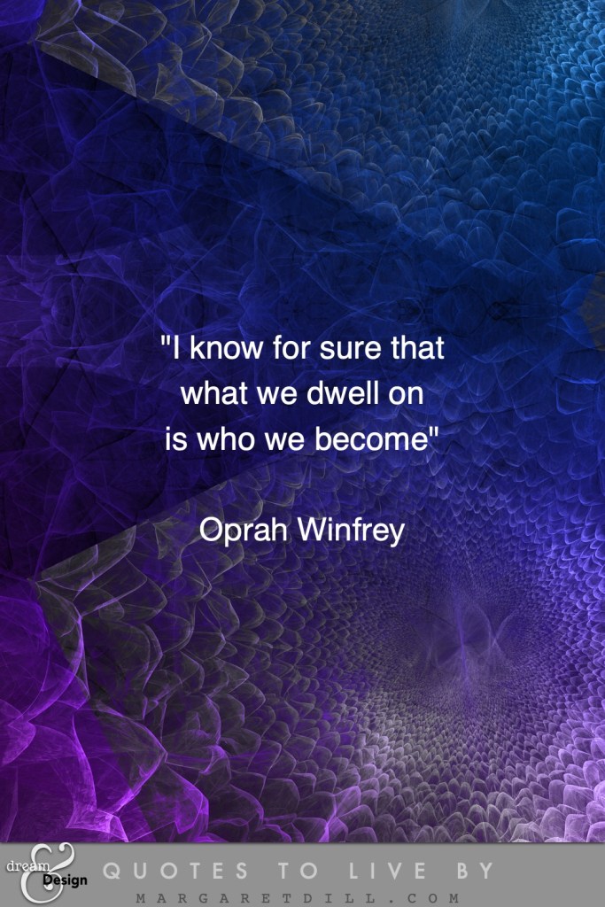 March 3, 2020January 31, 2022 margaretdill What We Dwell On I know for sure that what we dwell on is who we become. Oprah Winfrey Love Peace & Understanding Share this: Share on Pinterest (Opens in new window) Pinterest Share on Tumblr (Opens in new window) Tumblr Share on X (Opens in new window) X Share on Facebook (Opens in new window) Facebook Share on LinkedIn (Opens in new window) LinkedIn Like Loading... Related