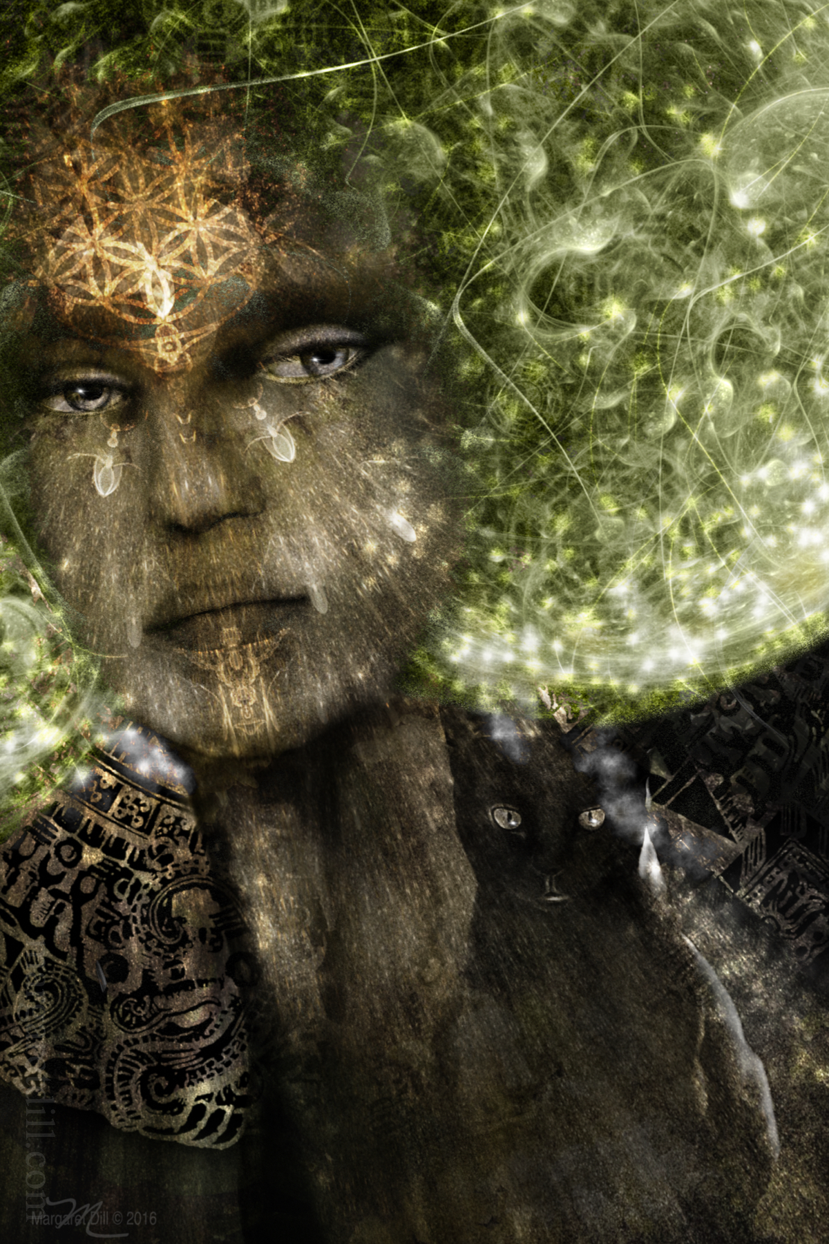 Companions-An ethereal dreamlike spiritual portrait in soft greens and browns is part of my spiritual beings of light collection. Artwork by Margaret Dill #Visionaryart #Visionaryartspiritual #Visionaryartmystical #Margaretdill